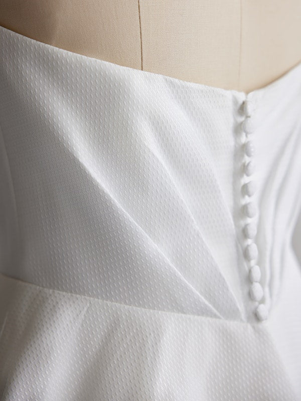 Luxury Jacquard satin wedding gown with a pleated front bodice and pockets