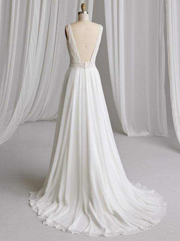 Open back beaded wedding dress with a romantic chiffon skirt with thigh-high slit